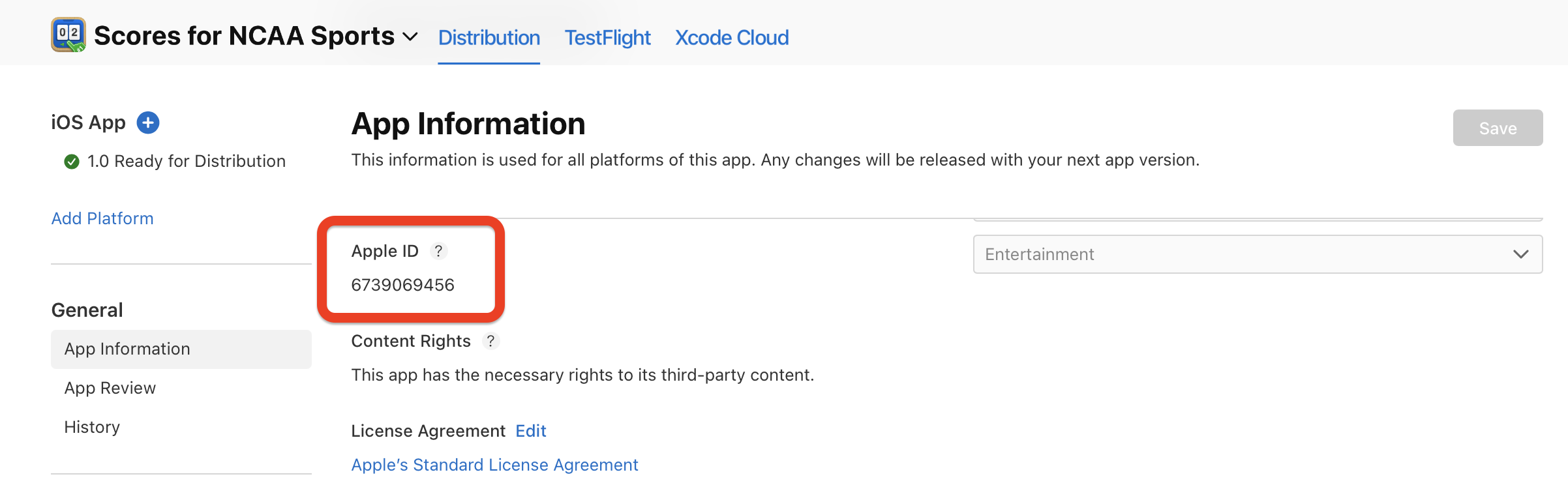 2. Apple App ID: Your app's Apple ID. You can find this in App Store Connect -> General -> App Information.