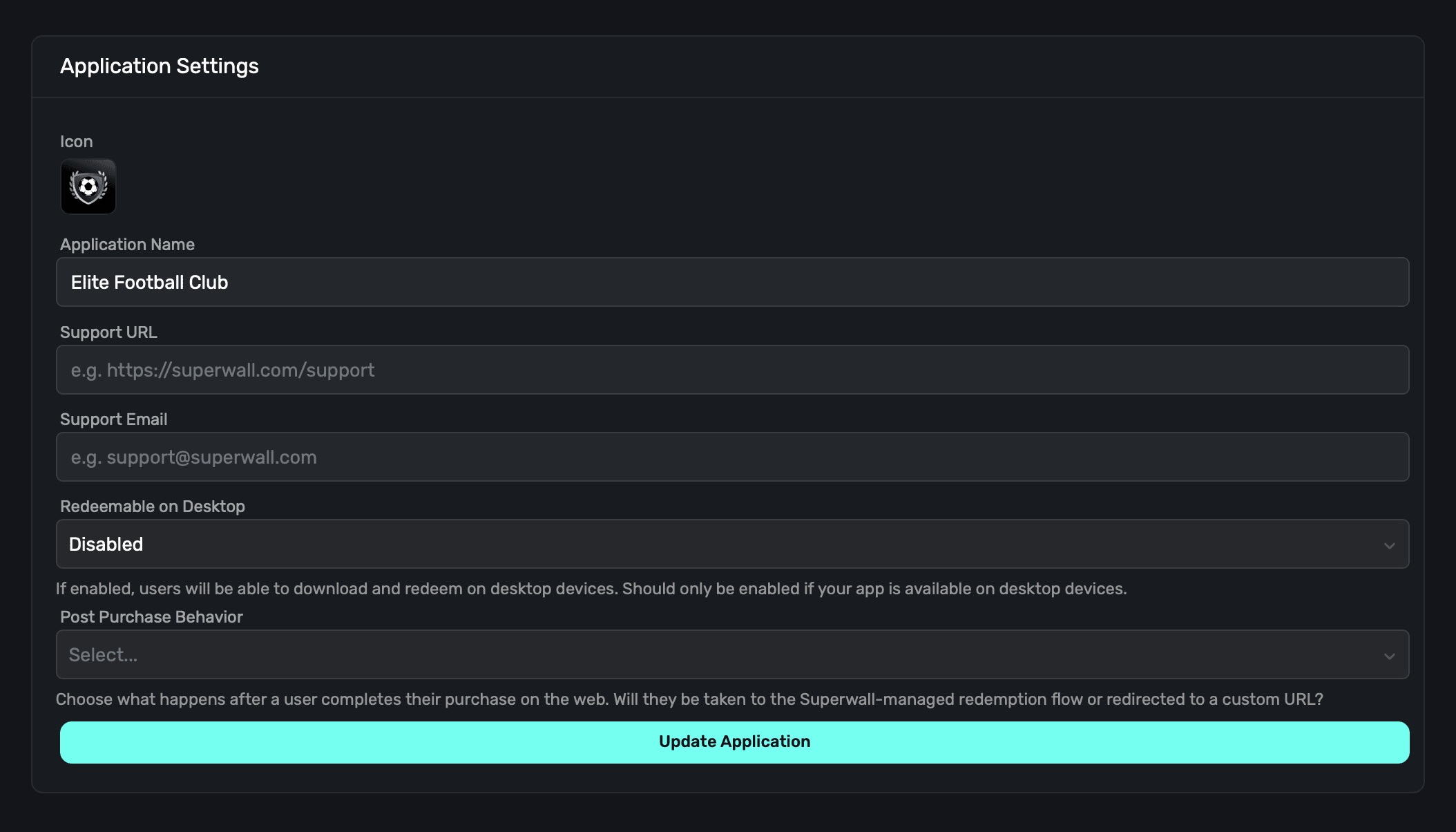 The name for your application in Superwall. This isn't user-facing and only used within Superwall. You can change it anytime.