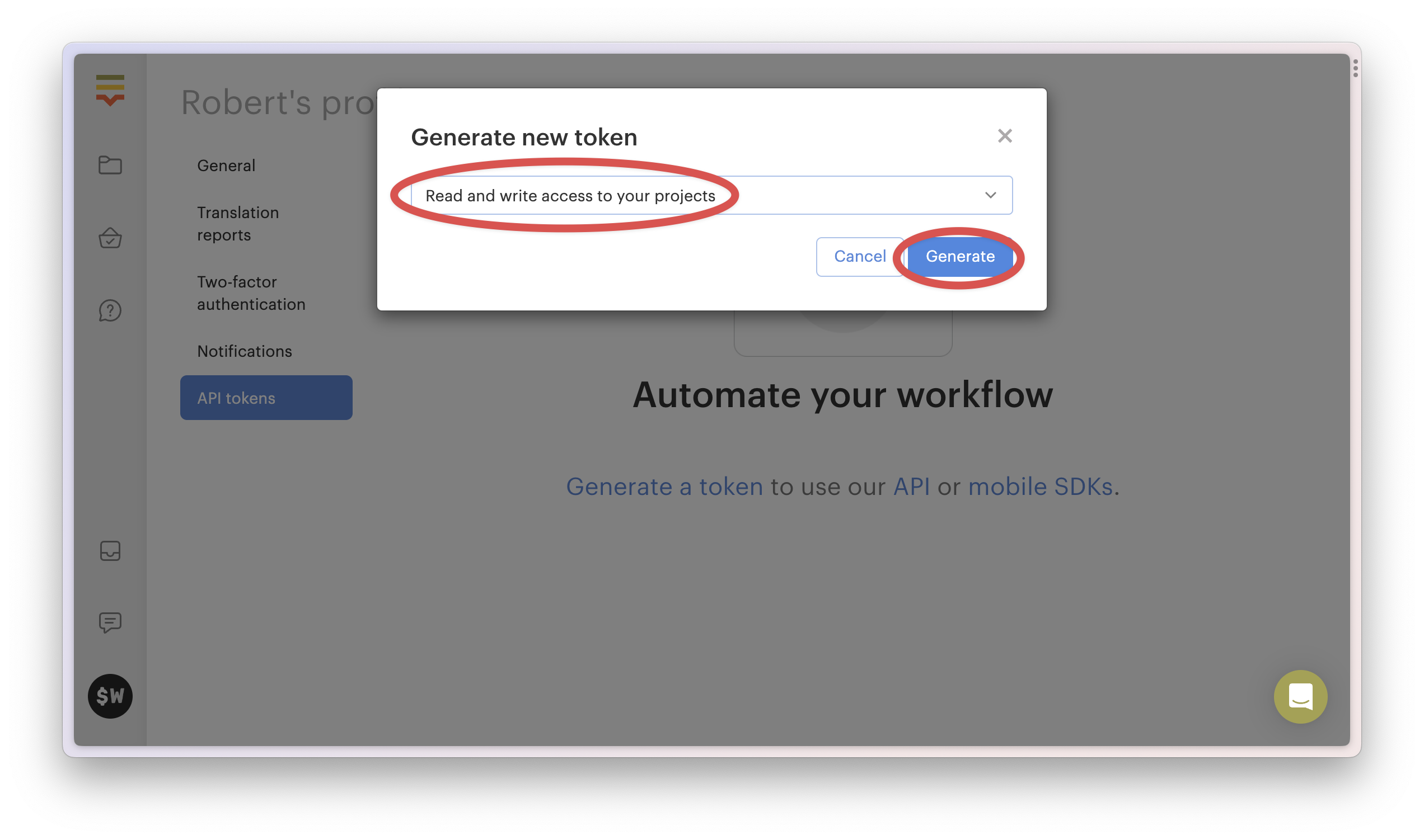 To set up Crowdin, you'll need to generate an API key.
