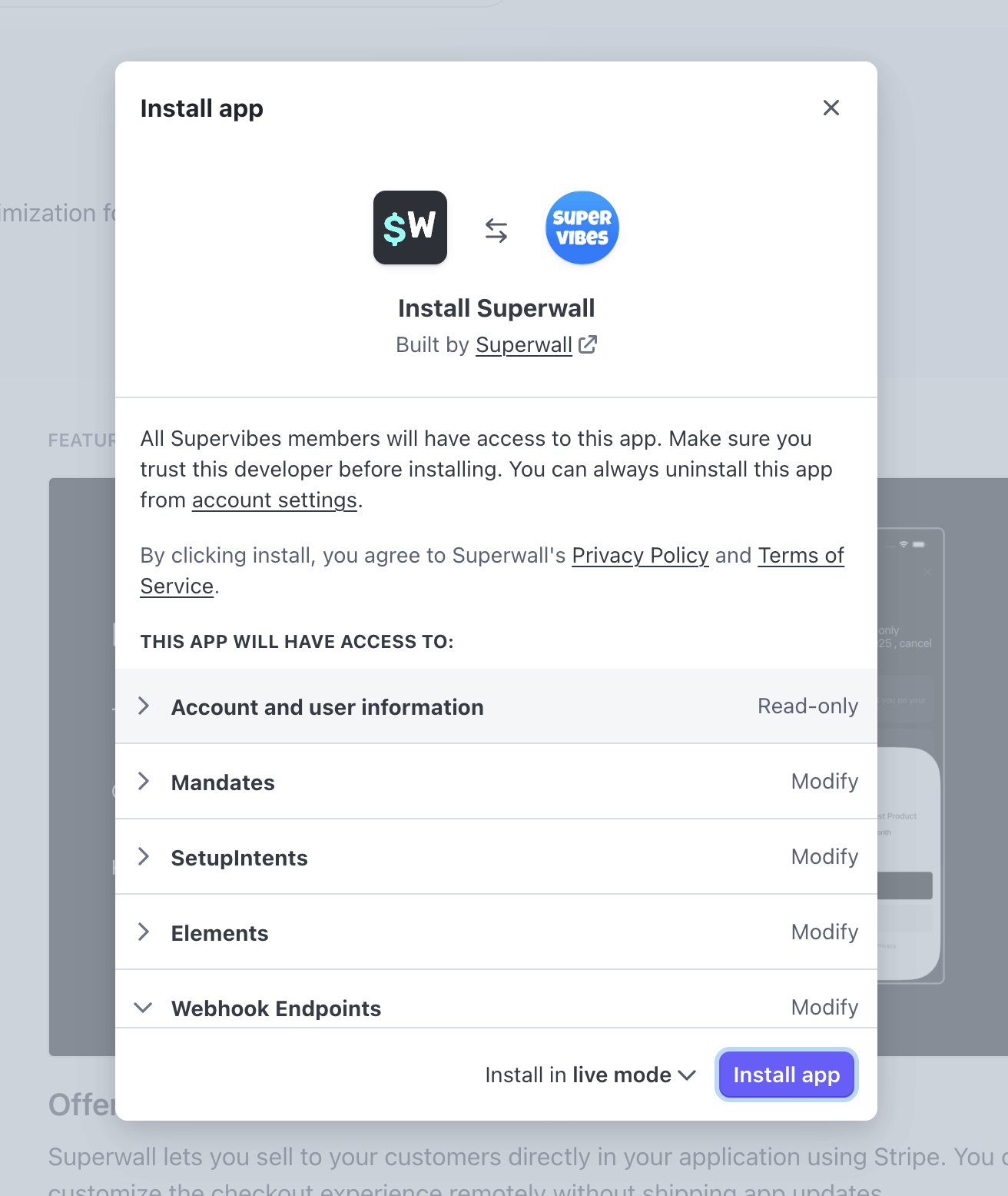 To connect Stripe with Superwall, you'll use the official Superwall Stripe app: